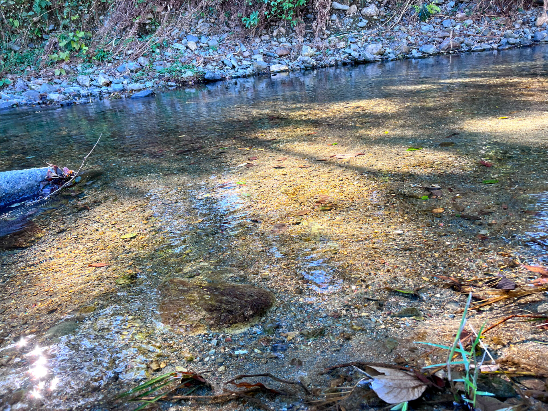 川の透明さと、ヘルマさんの小屋