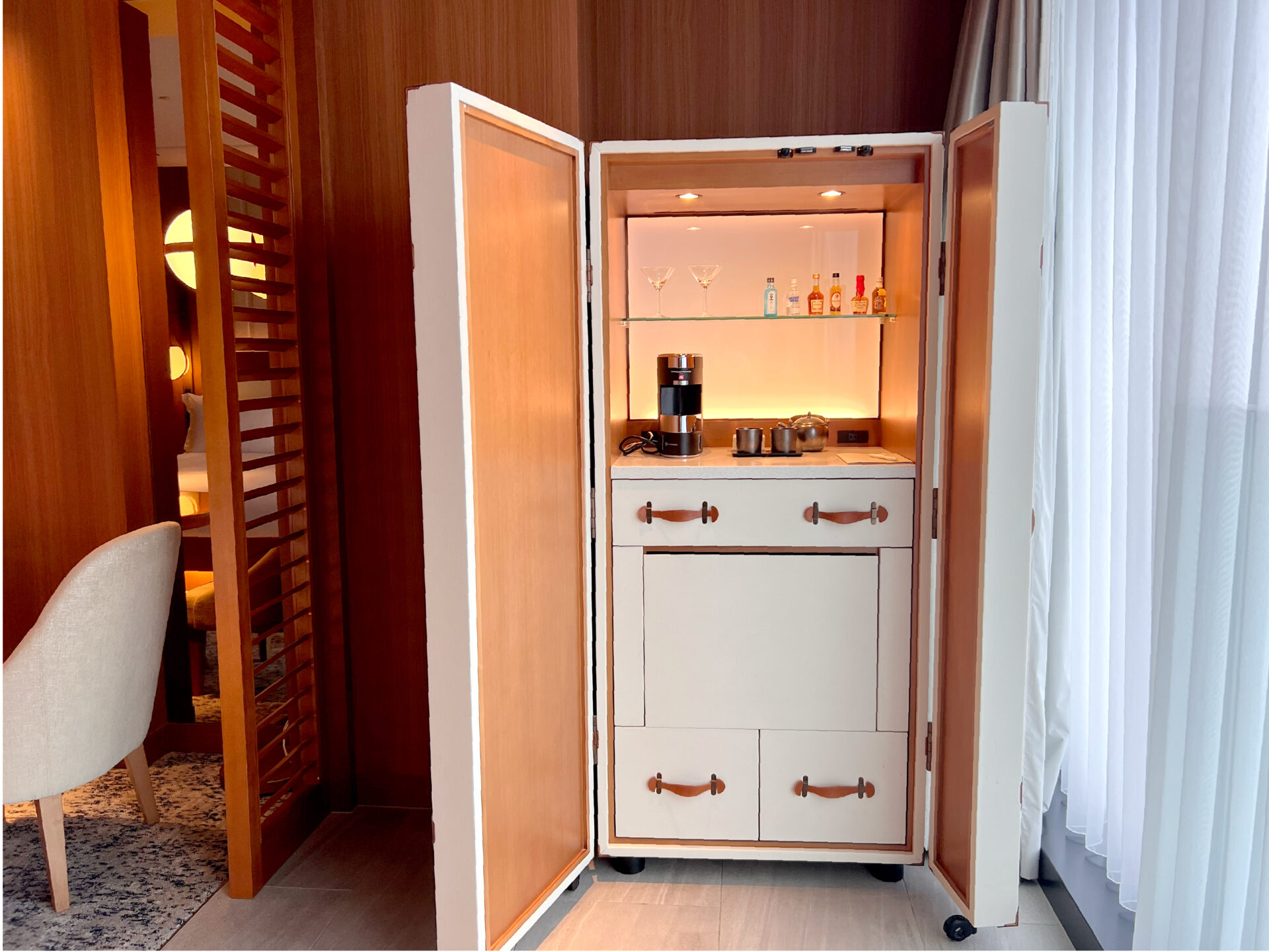 扉を開けると、そこには上質なミニバーが隠されていました。