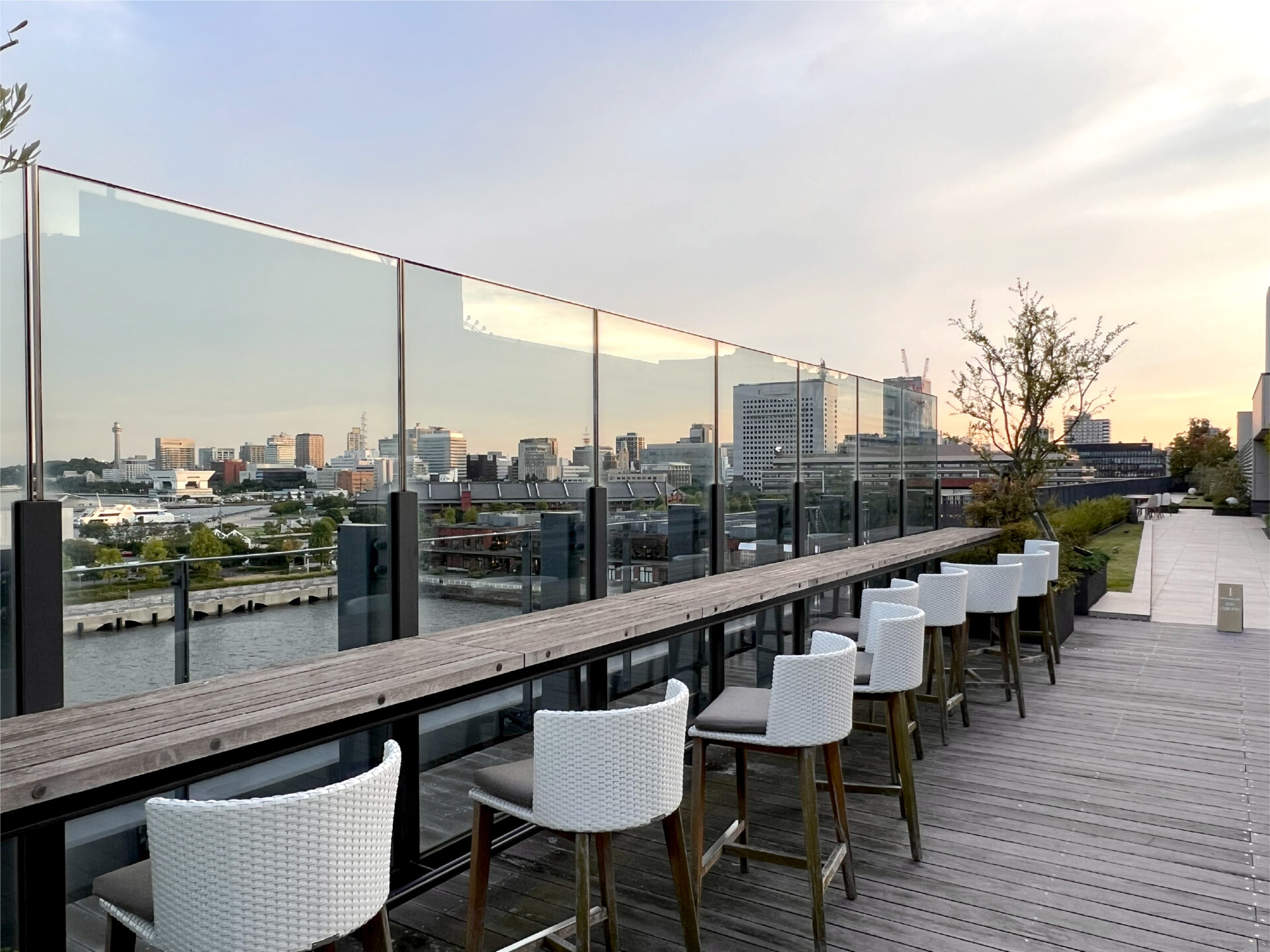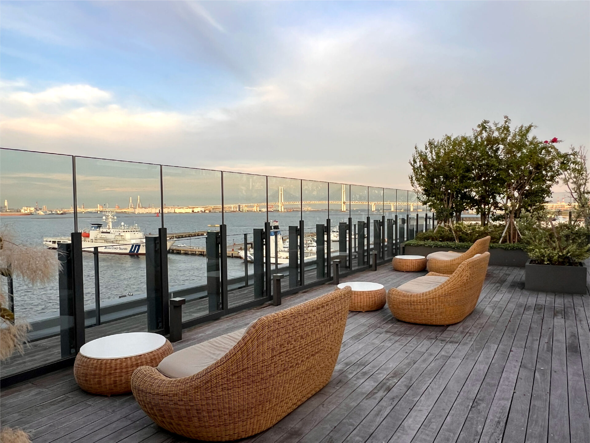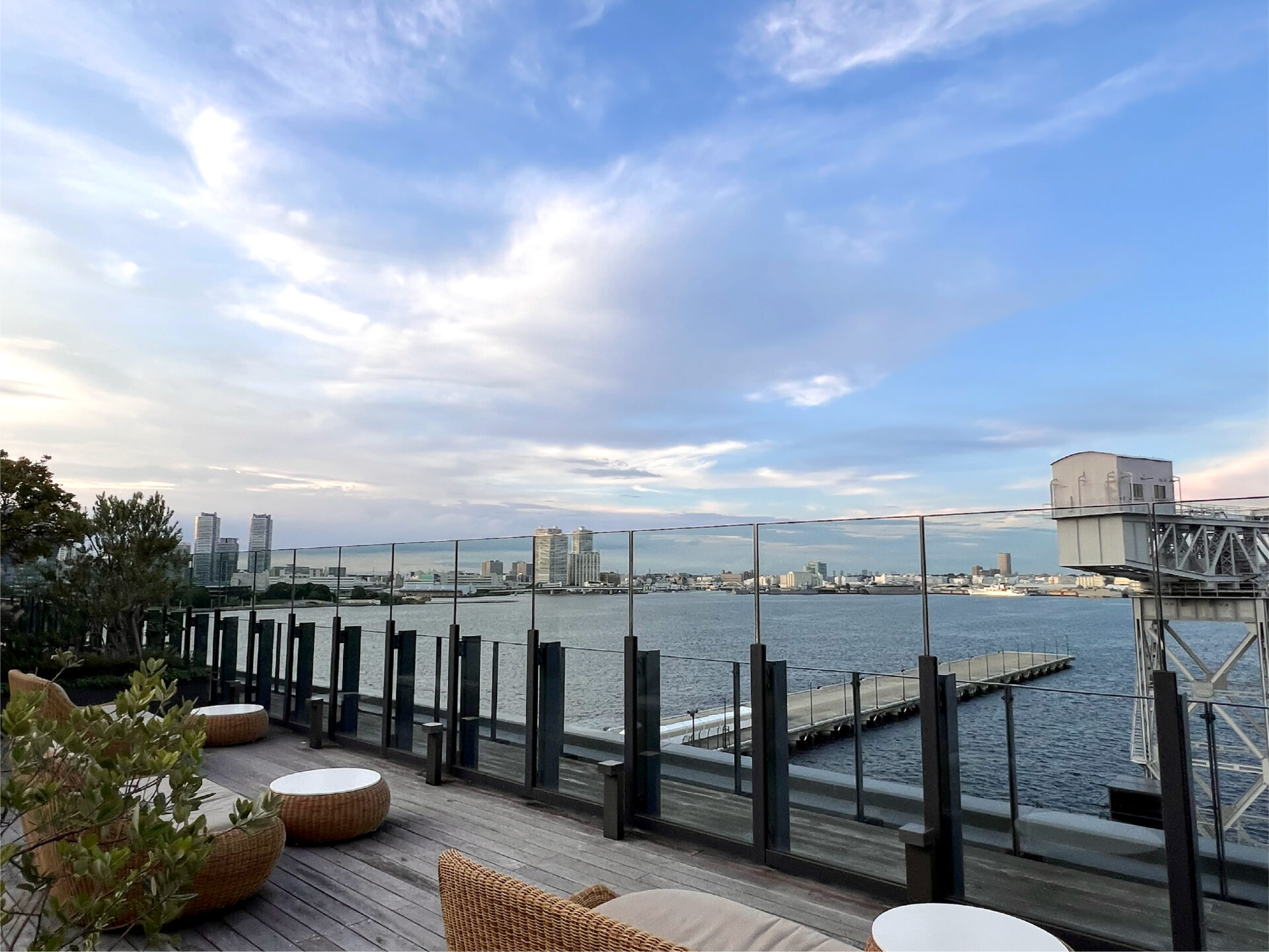 そこから眺める横浜の埠頭は、滞在中ずっと独り占めしたくなる特別な景色。