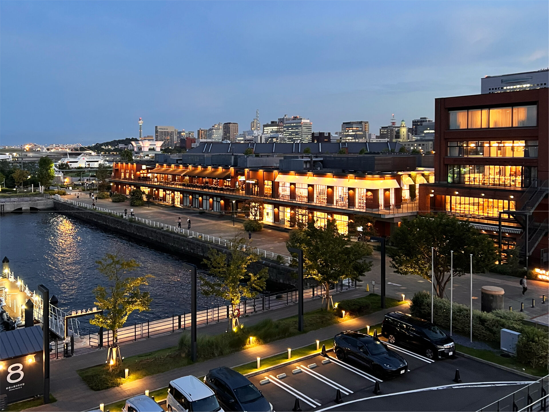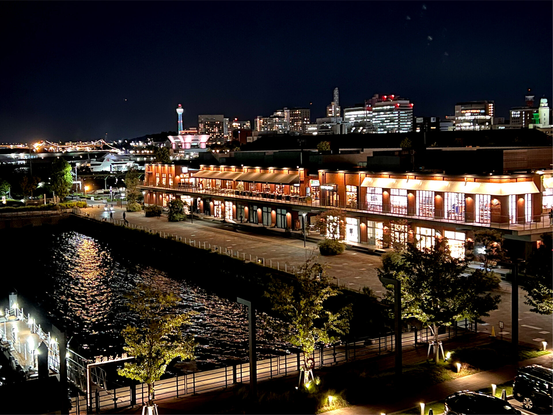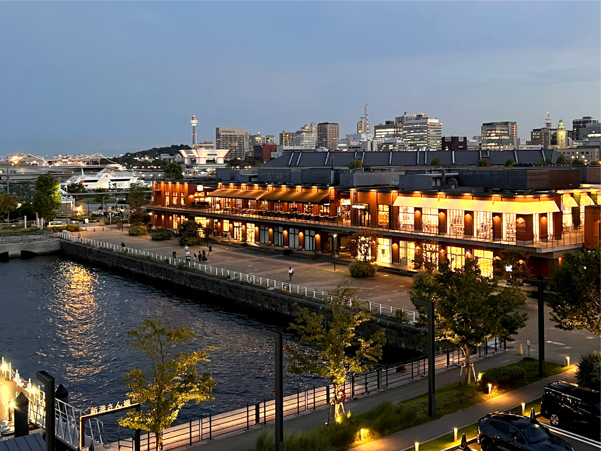 海沿いの「マリン&ウォーク ヨコハマ」は、日が暮れるにつれてライトアップされ、赤レンガと水面が作り出すコントラストが、まるで映画のワンシーンのように幻想的でした。