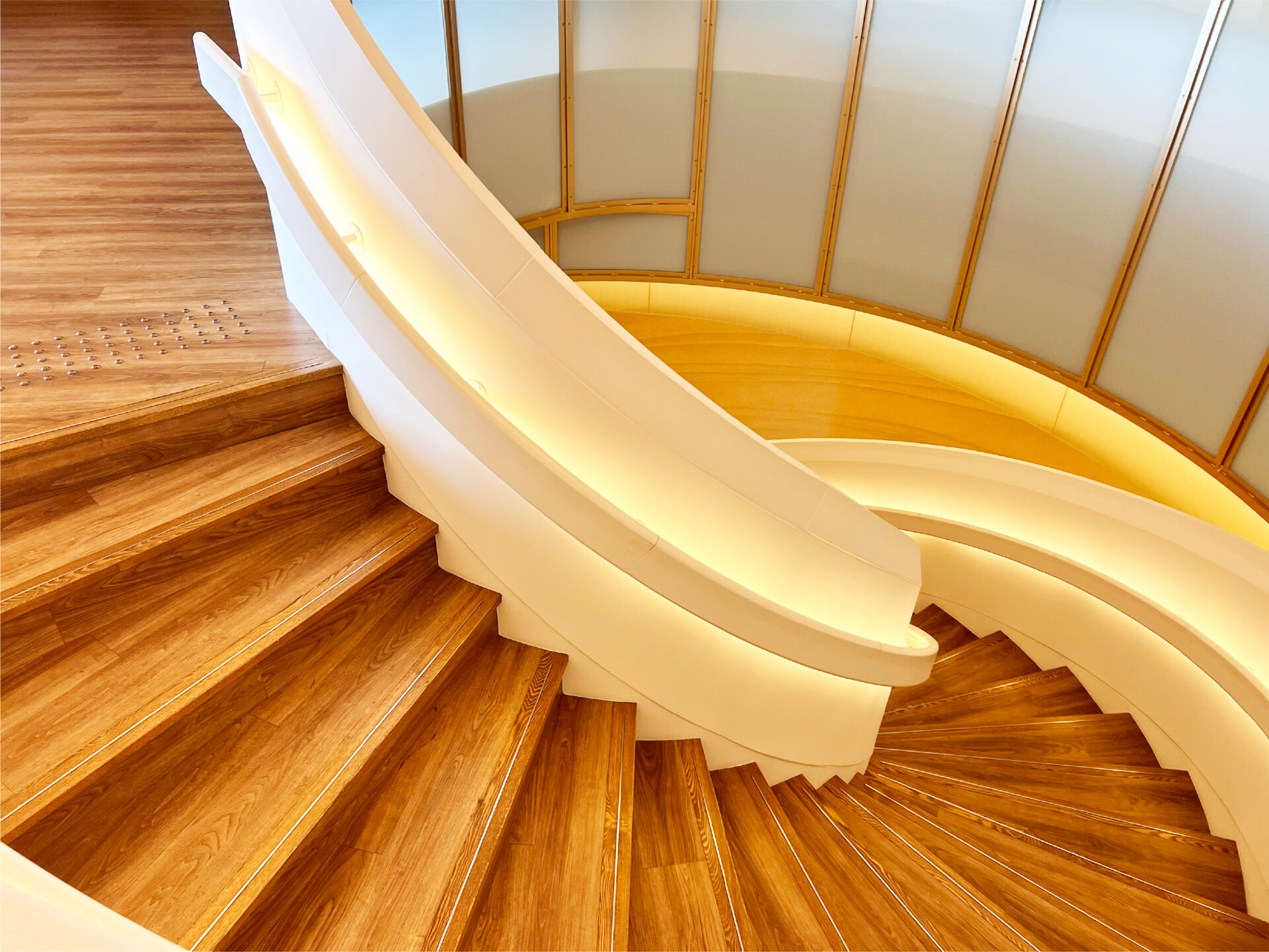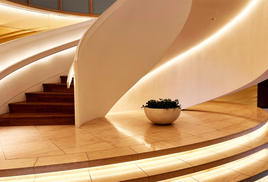 エントランスは、光をまとった白い螺旋階段が静かに出迎えてくれます。