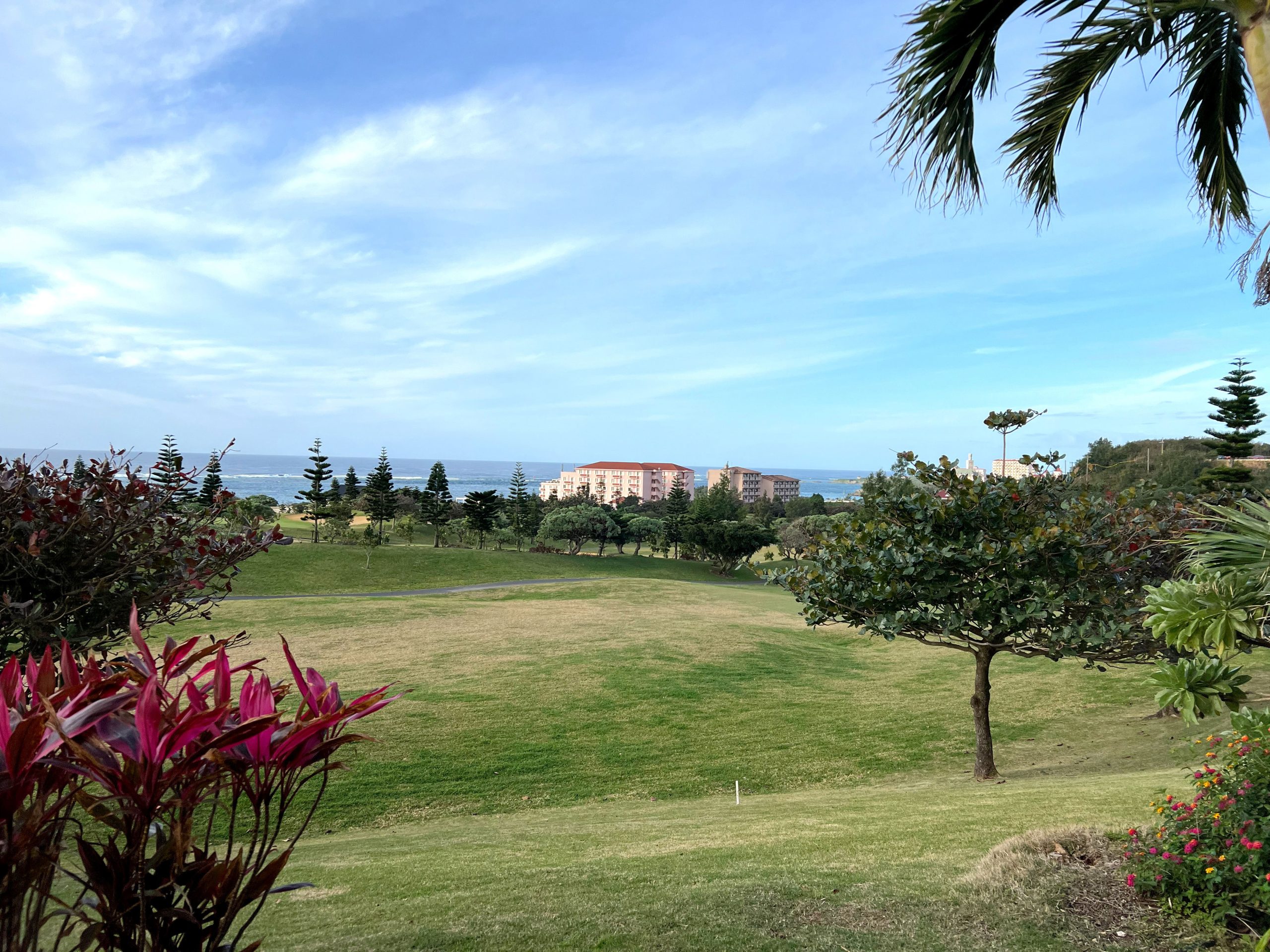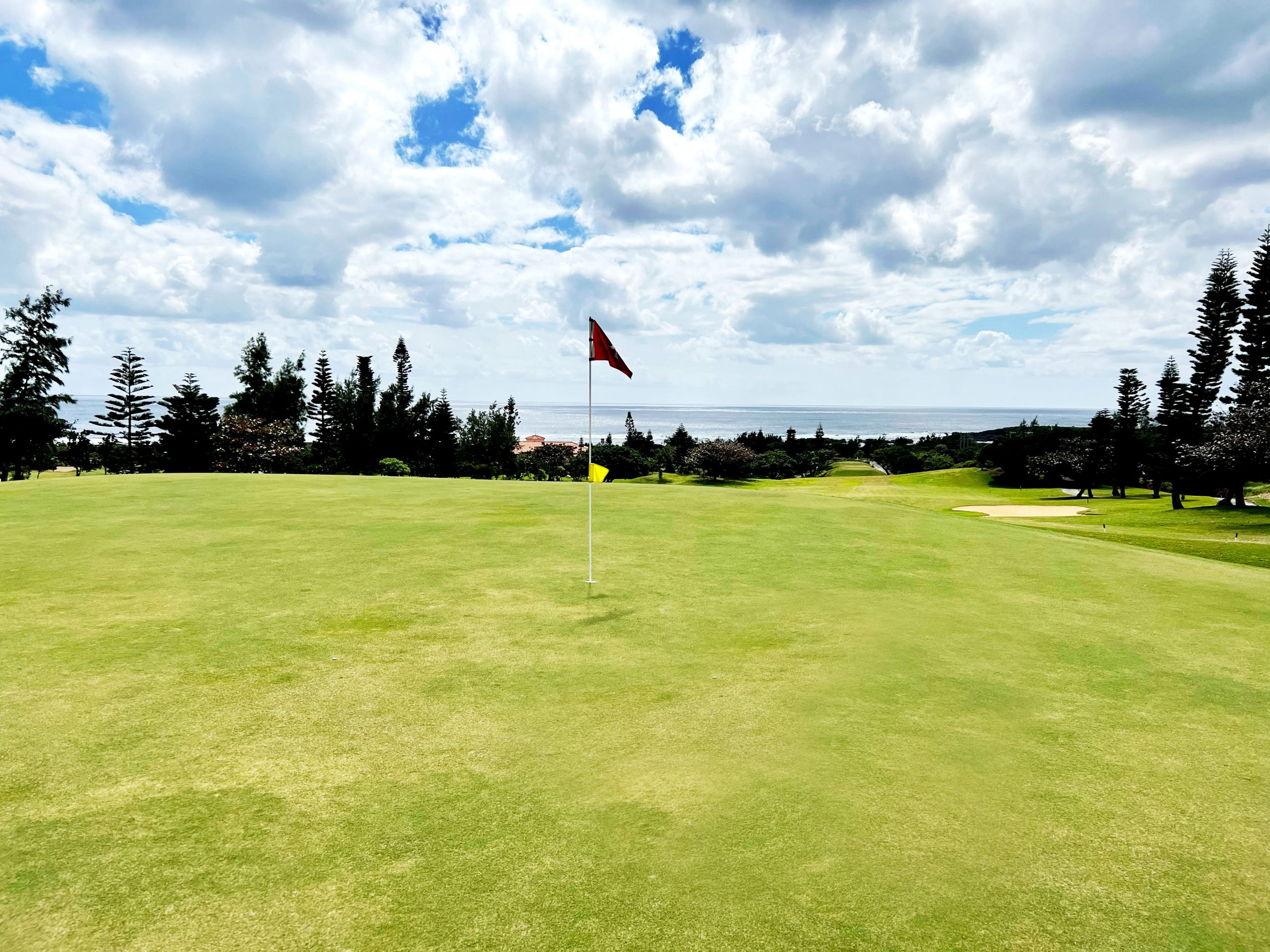 気温は穏やかで、芝の状態も非常に良好。宮古島の天候は変わりやすいので、ウインドブレーカーを1枚持参しておいて大正解でした。