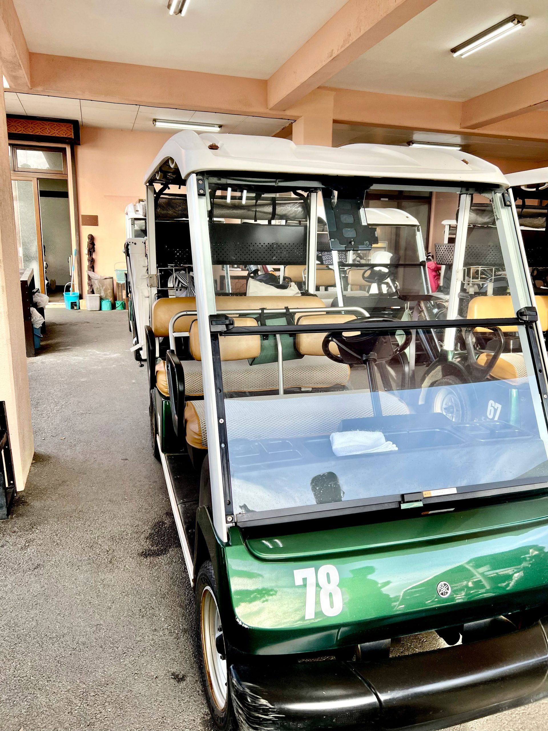 ゴルフクラブとシューズは事前に宅急便でクラブへ送付。身軽なカートバッグだけを持参しました。プレー後も送迎バスが入口前に待機しており、ホテルでリラックスした時間をすぐに楽しめます。